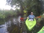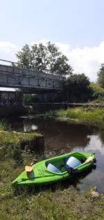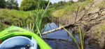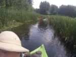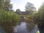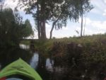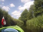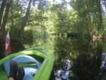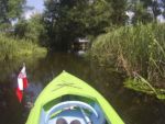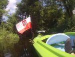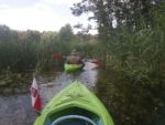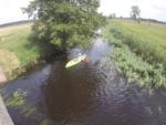 Jest bardzo ładny dzień. Właśnie po porannym epizodzie w basenie, śniadaniu i przygotowaniach, witamy się z naszymi kajakami polskiej produkcji, które spokojnie jeszcze leżakują na przyczepie kajakowej Czeka je i nas tajemnicza wodna wyprawa. Tajemnicza, bo nawet miejscowi dziwią się, że chcemy płynąć rzeką Miałą z Kamiennika wprost do Noteci. To zdziwienie tylko dodatkowo nas nakręca. Kto wie, może będzie szansa poczuć się jak prawdziwi wielcy odkrywcy? Może do polskiekajaki.pl trzeba będzie dodać po tej wyprawie przydomek Explorer? Wsiadamy do nich na Miale już za młynem w Kamienniku. Och Kamiennik. Ileż to historii kryje ta miejscowość? Warto o tym przeczytać w poprzednich artykułach. Skupiamy się jednak teraz na rzece. Już teraz jesteśmy zauroczeni jej urodą. Wąska rzeczka co zakręt zaskakuje nas powabem, przyrodą i nie pozwala się nudzić. Płyniemy do Chełstu. Jeszcze tylko zimorodek, ten polski „koliber” dwukrotnie przefrunie, jeszcze kolejne gałęzie zwisające nad nami trzeba będzie ominąć i już słyszymy szum wody. To 3 metrowy wodospad pod drogą nr 181 Drawsko – Drezdenko każe nam wysiąść z kajaków przed mostem. Huk wody, szum samochodowych gum i zajadle szczekające psy skutecznie zagłuszają pomiędzy nami komunikację werbalną. Betonowe schodki na brzegu nawet ułatwiają wyjście z kajaka i przetransportowanie go na skraj drogi. Z drugiej strony schodków już jednak nie ma, więc technicznie zsuwamy sprzęt dziobem w dół po wybetonowanym brzegu. Teraz jesteśmy raczej niemile zaskoczeni stanem rzeki. Nie jest to jej wina. Gospodarstwa przylegające do brzegów to przykład barbarzyństwa i bestialstwa wobec natury. Wszystko co najgorsze, niepotrzebne, zepsute stoi właśnie nad brzegiem. Nie potrzebujesz opon? Do rzeki! Odpady organiczne, butelki plastykowe, szklane, nawet całkiem dobry wózek do przewozu towarów? Co tam, w rzekę. Zaprawdę smażyć się będą w piekle wszyscy ci, którzy pogardzili rzeką, przyrodą i naturalnym pięknem, które bestialsko mordują od pokoleń. Tradycyjnie więc jeśli nie mieszkańcy, to my postanawiamy ulżyć rzece. Zbieramy pływające w wodzie butelki, puszki i pojemniki po nawozach sztucznych. Ładujemy to w dziób kajaka, który przyjmuje to ze zrozumieniem i pokorą. Przynajmniej w ten sposób możemy podziękować Miale za jej urodę i wysoką dziś wodę.