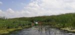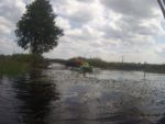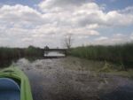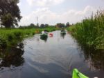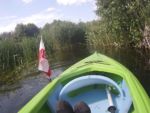 Za Chełstem płyniemy sobie coraz bardziej urodziwą Miałą. Są odcinki pod drzewami i coraz częściej wśród pól. Wysokie jednak trzciny i tatarak doskonale spełniają rolę parawanu więc dopiero przystanek na banany i jabłko pozwala nam się rozejrzeć głębiej po okolicy. W większości to pola i zagospodarowane pastwiska. Powoli w naszym kierunku zbliża się czereda wścibskich krów. Czy ciągnie je w naszą stronę ciekawość zobaczenia nietypowych użytkowników łąki czy lekceważąc nas po prostu zmierzają do wodopoju? Na to pytanie nie uzyskamy jednak odpowiedzi. Ich spacer idzie im tak ślamazarnie, że nie czekając na spotkanie ze stadem wsiadamy w końcu w kajaki i ruszamy dalej. Dopływamy do śluzy Chełst. Za śluzą mamy już do czynienia z dwoma rzekami rozchodzącymi się w kształt rosochy. To kanał Chełstnica i dalszy ciąg Miałej. I choć Kanał wydaje się szerszy, my z uporem maniaka trzymamy się Miałej. Kanał powstał zapewne by skrócić sobie drogę wodną do Starej Noteci, gdy spławiano tędy jeszcze jakieś towary rolne, a może dla innego celu? Miała bowiem dalej wije się polami przez kolejne wsie. Szandory śluzy są jedynie lekko uchylone po stronie rzeki Miałej. Zupełnie jakby nas zapraszały właśnie na tę stronę. Uchylenie jednak jest za małe, więc wyciągamy kajaki na brzeg i wchodzimy z wody do kokpitu po drugiej stronie jazu. Za 2 kilometry mostek, a potem jeszcze jeden już we wsi Pełcza . Ten jednak jest nie do pokonania. Pełcza zwana z niemiecka Fridrichhorts jest jeszcze administracyjnie w województwie wielkopolskim. Trzeba wyjść i osobiście pobyć na moście.. Gdy kajaki już na nim są z niedalekiego gospodarstwa wychodzi do nas w gumiakach Pan Zenek z Pełczy. To on zbudował ten most – 9 lat temu. Z uznaniem słuchamy jego opowieści i liczymy, że nas puści bez myta dalej. Chyba jednak nawet do głowy mu to nie przyszło, ot zwyczajnie postanowił sobie trochę porozmawiać o starych Polakach. W końcu niecodziennie przypływa ktoś pod jego furtkę kajakiem. Ruszamy dalej. Za plecami słyszymy pomruki zbliżającej się burzy. Obracamy się za siebie. Fakt. Czarne chmury zaczynają nas gonić i rosnąć w siłę. Musimy dostać się do mostu w kolejnej wsi. Jeszcze świeci słońce, jest upalnie, choć wiatr przyspiesza niebezpiecznie. W końcu, pierwsze krople deszczu spadają na okolicę. Czarne chmury są tak miłe, że ostrzegają nas przed nawałnicą. Spadające duże krople i pojawiające się bąble na wodzie to oznaka, że deszcz za chwilę ustanie. Ale potem nie będzie już litości. Gdy dopływamy do mostu w Lipnie, bez dyskusji wyciągamy kajaki na ląd, wypakowujemy, przewracamy do góry dnem i ubieramy kurtki przeciwdeszczowe. Coś nas nie lubi pogoda w województwie lubuskim. Ale deszcz potrzebny. Dziarsko ruszamy aleją lipową w kierunku wsi Lipno. I w tym momencie właściwa ulewa rusza z całym zaangażowaniem. Nam to już jednak nie przeszkadzało. Pierwsze gospodarstwo jakie napotykamy, właśnie wzbogaciło się o wiatę ze świeżo położonym brezentem zamiast dachu. Korzystamy z niej. Mimo pukania do drzwi domu nikt nie otwiera. Udzielamy więc sobie nawzajem zgody na skorzystanie z wiaty i w ten sposób oczekujemy na nasz samochód. Wkrótce podjeżdżamy nad rzekę, ładujemy kajaki na przyczepę i za 20 minut stajemy w bazie w Kwiejcach. Wychodzi słońce. Mocnym akcentem postanawiamy zakończyć ten dzień. Trafiamy piechtą nad jezioro Piast. Potwierdzamy. Woda podczas burzy w jeziorach zawsze jest najcieplejsza.