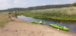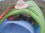 Wpłynęliśmy na improwizowaną plażę. Co prawda na tyły jakiegoś gospodarstwa oraz plac budowy z koparką, ale za to jest możliwość wjechania przez bramę samochodu z przyczepą od Strony ul. Nadrzecznej. Daleko więc nie nosiemy kajaków i spokojnie czekamy na przyjazd samochodu. Jeszcze ostatnie zdjęcie na wielkich głazach i wracamy do lądowego życia. Na zakończenie wyprawy, rytualnie znów wykapaliśmy się w Jeziorze Piast w Kwiejcach. Zasłużyliśmy. W końcu była to prawdziwie odkrywcza wyprawa. W ciągu jednego spływu zrobić 3 rzeki jednocześnie? W Puszczy Noteckiej, dzięki Miale jest to możliwe. Uwierzcie.