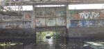 Nawet nie wiemy kiedy ale przed nami zaczyna być widoczny także most o konstrukcji nitowanej z ładnymi łukami. To też w Trzebiczu. Jakiś kilometr przed mostem mijamy po prawej ładne miejsce piknikowe. Na lekkim wzniesieniu wyraźnie widoczne ruiny domostwa. A może to bunkier? Miejsce nazywa się Milicz i jest zapewne starym folwarkiem. Bardzo dobre miejsce na rozbicie namiotu. Zatrzymujemy się przed mostem w Trzebiczu jakieś dobre 200 m. Lepiej sprawdzić możliwość przybicia do mostu niż wracać pod prąd. Faktycznie. Wyjście w pobliżu przeprawy drogowej byłoby znacznie utrudnione. Przed wojna był to most zwodzony a wieś nazywała się Trebitsch Aa Netze.