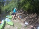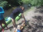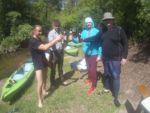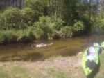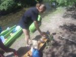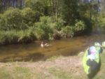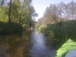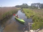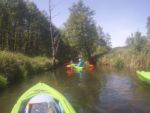 Wszystkie te domorosłe konstrukcje łączące łąki po 2 stronach rzeczki zawieszono na szynach kolejowych. Na jednej z szyn odszyfrowaliśmy datę 1911r. Prawdziwym skarbem tej puszczańskiej rzeczki jest stała dostawa atrakcji w postacie meandrów, prostych odcinków, zmieniającego się krajobrazu, wspaniałych łąk, borów sosnowych i szpalerów olch. Z Marylina rzeczka przetransportowała nas do Piłki. Ta stara XVI w. wieś pełniła przez długie lata funkcję wielkiego tartaku. W 1765r. Paweł Sapieha z Wielenia ufundował w Piłce drewnianą ( a jakże !) świątynię. Z poziomu rzeki zza rzecznych szuwarów widzimy tylko kwadratową wieżę kościoła pw. Matki Boskiej Wniebowziętej. Tę ciekawą ceglaną, katolicką świątynię zbudowano dzięki prężnemu proboszczowi Antoniemu Prokopowi w 1869r. którego mogiła znajduje się na przykościelnym cmentarzu. Obok świątyni w starej wikarówce funkcjonuje schronisko oazowe „Pod Rybą”, w lesie fantastycznie położona atrakcyjna ścieżka edukacyjna z wielkimi grzybami. W końcu nie ma lepszego miejsca w Wielkopolsce na grzyby jak Puszcza Notecka! W centrum wsi Krzyż Dziękczynny z 1919 r. okazji odzyskania niepodległości. Mija właśnie 1 godzina i 56 minuta naszej podróży po Miałej. Płyniemy dalej przez Folwark Piłka. To zapewne XIX w. przysiółek tartaczny. Na zupełnym skraju folwarku wykorzystujemy polanę z kilkoma prostymi ławeczkami i urządzamy tu 1,5 godzinny piknik. Długo? Wierzcie mi! Po rozpakowaniu skrzynki, na narzędzia i wyciągnięciu przez właściciela jej zawartości moglibyśmy naszą przerwę przedłużyć do wieczora, a i to nie wiadomo czy nie dłużej. Ze skrzynki wprost na palnik wylądował garniec z gulaszem z dzika ( zresztą, osobiście poległego z ręki organizatora „Projektu Miała”), obok własnoręcznie pieczony chleb oraz pięć zapakowanych osobno domowych drożdżówek z truskawkami. Nie wiem czy jakiś inny kajakowy piknik mógłby dorównać tej akcji? Scenografia tego pikniku to już prawdziwie malarski pejzaż. Kiedy na wysokiej skarpie podgrzewał się gulasz, Tomek i Grzegorz skorzystali z wodnych darów rzeczki. Żółty piasek dna, szeleszczące potężne brzozy i sosny, łąka ze skoszoną trawą o łagodnym południowym nachyleniu, śpiew ptaków, brak upierdliwych owadów, słońce i zapach gulaszu. Czyż to nie jest sceneria, dla której warto wstać rano w niedzielę? Może być nawet poniedziałek. Idealnie wymierzona porcja, zapach chleba. Rodzinne kuchcenie firmy –ABC – AmeliaBestCatering17 to chyba najlepsza kuchnia piknikowa jaką dane mi było zasmakować. Po tej małmazji, konsumpcję drożdżówek przenieśliśmy na zakończenie spływu. Błogie lenistwo na brzegu Miałej trwało dobre 1,5 godziny. Następny odcinek spływu obfitował w krajobrazy jak z najlepszych filmów przyrodniczych. Zachwycała nas gra świateł w olchowym lesie, kolory łąk i ścian sosnowego lasu. Przelot czapli siwej i start z wody kaczek krzyżówek. Nawet zapach pastwisk z wylegującymi się czarno – białymi przeżuwaczami stanowił ciekawy przerywnik w obserwacji dzikiej przyrody. Ale prawdziwym zaskoczeniem był dla nas stojący na łące nad brzegiem rzeki… czołg. Trzeba przyznać, że w najśmielszych marzeniach nie spodziewaliśmy się takiej atrakcji. Pierwsze wrażenie było zaskakujące i już wyciągaliśmy z zanadrza nasze noże, by bronić niepodległości kajaka, gdy drugie spojrzenie trochę nas uspokoiło. Zbudowany z betonowych płyt w skali 1-1 czołg mógłby spokojnie spełniać rolę dobrej makiety na polu bitwy. Od czasu do czasu mijamy samotne gospodarstwa. To właśnie z rzeki doskonale przestawia się historia zagospodarowania Puszczy Noteckiej. I choć żadne z domostw nie ma już dachu krytego strzechą ani uroczych okiennic oraz płotów z gałęzi czy wikliny to właśnie takie miejscówki łatwiej pozwalają ogarnąć historii naszą wyobraźnię. Samotne gospodarstwa – olęderskie osadnictwo. Czy to przy nich wypalano węgiel drzewny? A może wytapiano rudę darniową? Jak wyglądało puszczańskie życie rodzin w osamotnieniu społecznym? Jak wyglądały zwyczaje poszukiwania chętnej panny na żonę? Jak zdobywano kawalera? Czy ograniczano się tylko do najbliższych osad? Czy mogli ukrywać się tu zbiegli więźniowie albo partyzanci? Czy gdziekolwiek przetrwały opowieści, może zdjęcia tych miejsc sprzed 100 -200 lat? Dopływamy w pobliże Brokowa. To właściwie kilka chat przerobionych na agroturystykę oraz przystań kajakowa. Woda płynie coraz wolniej, rzeka staje się coraz szersza. To zasługa tamy na Miałej w Kamienniku. Gdy dopływamy do tej starej wsi wpływamy na szerokie wody stawu Kamiennik. Przed nami skromne dziś zabudowania młyna, a po lewej zagospodarowana plaża z pomostem. Na lewym brzegu na wzniesieniu wyrasta skromna świątynia pw. św. Piotra. Podobno stary drewniany kościół książę Sapieha przeniósł stąd właśnie do Piłki i tam wtedy powstała parafia katolicka. Czyżby powodem tego czynu był brak we wsi katolików, a bogobojny właściciel nie zamierzał kościółka oddawać protestantom? Kaplica w Kamienniku bowiem powstała dopiero w XX w. Ewangelicy tymczasem chodzili na nabożeństwa do pobliskiego Chełstu. Dobijamy do brzegu. To koniec naszej spokojnej, prawdziwie relaksacyjnej podróży rzeką Miałą przez fragment największego lasu w Polsce zwanego Puszczą Notecka. Już teraz nurtuje nas ciekawość. Jak wygląda Miała za młynem w Kamienniku? Czy jest równie urokliwa i da się stąd spłynąć do samego Drezdenka? Czy można płynąć naturalnym korytem rzeki albo tylko Kanałem Chełstowskim do Starej Noteci? Na te pytania odpowiemy sobie na pewno. Lecz nie dziś…. Tymczasem pakujemy kajaki na przyczepę, a sami wczytujemy się w historię wsi wyłuszczoną na wielkiej tablicy przed młynem. Sam młyn, dziś skromny i dotknięty zębem czasu założył młynarz 