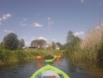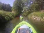 Kiedy mówimy o puszczy od razu przychodzi nam na myśl ostatni naturalny las Europy – Puszcza Białowieska. To faktycznie prawdziwa skarbnica przyrody wpisana przecież na światową listę dziedzictwa UNESCO. W Wielkopolsce, która od wieków była siedzibą dużej ilości grodów i akcji osiedleńczych, naturalne lasy szybko uległy przetrzebieniu i wyrugowaniu. Tu powstawała administracyjna Polska, więc trzeba było mocniej sięgać do dóbr natury i zagospodarowywać trzebieże, by Państwo mogło funkcjonować bardziej bogato. Budowa grodów do dziś budzi podziw także historyków, archeologów i inżynierów. Naukowcy zastanawiają się także jak niezwykłą pracę fizyczną i organizacyjną trzeba było wykonać, by dostarczyć na miejsce budowy odpowiednią ilość drewna. Gdy sobie uzmysłowimy, że taki gród na Lednicy, w Gieczu czy w Kaliszu to ok. 150 m średnicy składający się z budowli drewnianych, z wałem o wysokości 12 metrów, mostami o długości 600m ( Lednica) to zaczynamy doceniać zapał, organizację i talent naszych słowiańskich Przodków. Warto sobie uzmysłowić, że do budowy i umocnienia grodu za pierwszych Piastów potrzebna była setki M3 drewna. Dla takiego np. mostu na Jeziorze Lednickim użyto 200 M3 drewna. Czas pracy także obliczono. 100 ludzi przez 12 godzin dziennie w ciągu miesiąca potrafiło oddać do użytku 5 m szerokości przeprawę na jeziorze głębokości kilkunastu metrów. Zapotrzebowanie na szlachetne drewno było ogromne. Jakim bogactwem zatem dysponowały wtedy puszcze dziś trudno nam sobie nawet wyobrazić. A przecież drewno potrzebne było także na rozbudowę chat, narzędzi, mebli i do opału, a czasami do budowy oblężniczych machin. Mimo to w Dolinie Noteci praktycznie do XVIII w. przetrwał w Wielkopolsce ogromny obszar lasu. Dolina Noteci była zawsze ziemią graniczną, dlatego też stanowiła naturalną granicę ludzkich światów. Początkowo pewnie Polan i plemion pomorskich, później Korony i Marchii Wschodniej, dalej Polski i Prus. To właśnie w XVIII w. rozpoczęła się wielka kolonizacja puszczańskich ostępów, którą na mniejszą skalę wcześniej prowadzili Górkowie, Opalińscy i Kwileccy. Sprowadzanie osadników z Holandii, później z innych obszarów Niemiec, także z Czech i Śląska do zagospodarowywania bagnistych nieużytków, mokradeł i bagien silnie zmieniły oblicze puszczy, ale nie wyrugowały jej znaczenia. Nie wszystkie wsie, osady i przysiółki miały okazję przetrwać do naszych czasów. Po niektórych pozostały tylko nazwy, czasami zarośnięty ewangelicki cmentarz, jakieś zarastające miedze, sztuczny staw czy kamień graniczny. Doskonałym przykładem jest miejsce po wsi Radusz koło Międzychodu. Dziś teren, który określamy mianem Puszczy Noteckiej to obszar o długości 150 km i szerokości 30 km. W sumie to największy las w Polsce. Rozciąga się od Santoka i Skwierzyny do Obornik i Rogoźna na wschodzie. Kręgosłupem tego leśnego świata jest rzeka Noteć. I choć w dużej mierze Puszcza Notecka to bory sosnowe, wydmy i piachy w Dolinie Noteci znajdziemy na jej terenie kilka rzek i jezior. Całość Puszczy to teren Natura 2000 oraz teren Leśnego Kompleksu Promocyjnego. I choć zespół śródlądowych wydm z najwyższą Sowią Górą ( 93mnpm) jest unikatowy w skali Europy, a najstarsze drzewo Dąb Józef koło Marianowa powinno przykuć naszą uwagę, my postanawiamy spenetrować fragment Puszczy Noteckiej w inny sposób. Liczymy także na poznanie jej zaskakującego krajobrazu od strony rzeki Miały. To rzeczka o długości 62 km. Swoje źródła ma w Nowinie koło Lubasza –starego grodu, na którego miejscu stoi dziś dumnie Sanktuarium Maryjne. Ujście znajduje się pod Drezdenkiem, gdzie Stara Noteć wpływa do Noteci. Nie jest to zbyt popularny szlak kajakowy. Przy niskim stanie wody może być dość uciążliwy w spływie. Niskie mostki dopełniają pojecie – uciążliwy. No, taka rekomendacja przekonuje do spłynięcia Miałą Jest niedziela. Dzień zapowiada się wspaniale. W samochodzie swoje miejsce zajmują szczelnie zamykane worki żeglarskie oraz hit cateringowy dzisiejszego dnia. Ok. 10.00 stajemy na moście drogowym w Marylinie. Pięć kajaków polietylenowych z wygodnymi siedziskami ląduje pod mostem na prawym brzegu Miały. Wsiadamy do kokpitu i rozpoczynamy spływ. Wieś Marylin znana była dawniejszymi czasy z swojego młyna na Miałej. Swoją nazwę nosi dopiero od roku 1919. Wcześniej zwała się Smrodakiem. Oprócz przepływającej Miały jest tu w pobliżu kolejna woda – jezioro Moczydło z atrakcyjną ścieżką edukacyjną na temat słodkowodnych ryb. Przed nami 14 km odcinek do Kamiennika. Pogoda doskonała. Rzeczka po ostatnich opadach podniosła się o dobre 2 cm jest więc szansa, że obędzie się bez spacerków po rzece. Jedno jest pewne. Nie spotkamy tu raczej żadnej innej kajakowej duszy. Rzeka nie ma tu więcej niż 3-4 m szerokości. Ilość zatorów drzewnych na tym odcinku praktycznie żadna. Czystość rzeki bardzo poprawna. Ilość nisko zawieszonych mostków – 4.