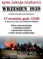 Celem lekcji historycznej było przypomnienie, że wakacje upalnym latem 1939 roku były niby takie same jak zazwyczaj lecz zakończyły się zupełnie inaczej. Jakieś ogólne napięcie i oczekiwanie, strach i niepewność wkradały się w sielskie krajobrazy spokojnej wsi, pomiędzy mieszczańskie kamienice, dworkowe i pałacowe ogrody, do sztetli i szacownych mieszczańskich domów.  Niepokój zasiadał w kościelnych ławach, zakradał się za aron – ha kodesz, i straszył na tatarskich mizarach. W domach i na peronach żegnano mężów i ojców ubranych w mundury, lotników, kawalerzystów, marynarzy i piechurów. Może jednak wojny nie będzie? – powtarzano. A jak będzie to popędzimy Niemców z Francuzami i Anglikami do Berlina i za dwa tygodnie będzie po wszystkim… Przecież nie oddamy nawet guzika.  Ogromny wysiłek żołnierzy polskich podczas Kampanii Wrześniowej na zawsze wszedł do panteonu chwały. Walki  z Niemcami, Słowakami i Armią Czerwoną toczyły się do 6,7 października – wtedy to do niewoli niemieckiej poszedł ostatni dzielny generał F. Kleeberg. Dziadek piszącego te słowa dostał się do niewoli sowieckiej w Lasach Parczewskich 8 października. Kontynuował walkę major H. Hubal – Dobrzański gromiąc jeszcze Niemiaszków 30 marca 1940 r. pod Huciskami i dzień później pod Szałasem dzielnie przebijając  się przez obławę. Ale cierpienia we Wrześniu’39  nie ominęły dzielnej do granic ludności cywilnej. Rzesze uchodźców, uciekinierów szły na wschód atakowane przez Ju-87, Messerschmidty 109Bf, które siały popłoch, panikę i śmierć pośród Bogu ducha winnych Cywili. Dziesiątki osób z Obrony Cywilnej – powołanej w 1936 roku i Harcerzy z narażeniem życia pomagały potrzebującym, wspierały żołnierzy, szpitale polowe i strażaków. O nich, o bezbronnych, ale uzbrojonych w dziedzictwo obowiązku była właśnie ta rekonstrukcja historyczna. Postąpili – jak trzeba.