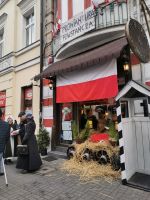 W  101 rocznicę  wybuchu Powstania Wielkopolskiego Fundacja Kochania Poznania oraz Projekt Miś postanowiły ożywić ulicę Garbary na odcinku od ul. Wielkiej do Placu Bernardyńskiego. Dwupasmowa ulica, zabudowana secesyjnymi kamienicami przecinająca kilka skrzyżowań od Cytadeli do Drogi Dębińskiej jest potwornie ruchliwa. Dwa pasy ruchu, kilka przejść dla pieszych, mnóstwo różnorodnych sklepów, warsztatów rzemieślniczych, kawiarenek i restauracji. To wszystko w szacie niedocenianej i niezauważanej architektury. Nawet tablice pamiątkowe tkwiące na fasadach kamienic, a co dopiero mówić o ich dawnych mieszkańcach, dekoracjach portali drzwiowych, okien i wnętrz bram nie są wstanie zatrzymać spieszących za swym „szczęściem” mieszkańców. Nietypowe obchody rocznicy wybuchu Powstania właśnie postarały się skierować i zatrzymać Poznaniaków na Garbarach. Poświąteczna atmosfera sprzyjała tego typu projektowi. Już dzień wcześniej w witrynach sklepowych pojawiły się wielkie narodowe kokardy i obowiązkowo flagi narodowe. Przypuszczamy, że Garbary stały się tego dnia najbardziej biało – czerwoną ulicą w Poznaniu. Centrum dowodzenia całą akcją stała się Oberża pod Dzwonkiem, która zamieniła się na ten dzień w Prowianturę Powstańczą. Właścicielka – Aleksandra Korytowska sama zaangażowała się w działania powstańcze i dzielnie uczestniczyła w dokarmianiu rekonstruktorów, Gości i szacownych notabli. Właścicielka wyglądała zupełnie tak jak Pani Korytowska 101 lat temu. Aż 300 darmowego rumpucia wydano tego dnia. 300 sznek z glancem skonsumowano na miejscu, wypito – no dobrze tego już nie będziemy wyliczać. Generalnie Oberża zmieniła się nie do poznania. Dolna cześć pozostała częścią gastronomiczną. Górna natomiast stała się salą wystawienniczą i wykładową. Zobaczyć tam można było wystawę zbiorów medycznych sprzed 100 lat Marcina Nowakowskiego, który ubrany w strój sanitariusza udzielał skrzętnych informacji w asyście pary Powstańców. W jednej z sal przedstawione był sylwetki Pań, które spokojnie nazwać można Matkami Chrzestnymi Powstania Wielkopolskiego. Wykład na ten temat wygłosił sam Prezes Fundacji Kochania Poznania Paweł Cieliczko. Już sami nie wiedzieliśmy czy przypadkiem pośród pięknie przebranych tego dnia Pań, nie snują się zjawy  Anieli Tułodzieckiej, Heleny Rzepeckiej, Janiny Omańkowskiej czy Zofii Sokolnickiej. Naprawdę trudno było jednoznacznie odróżnić  nasze Rekonstruktorki od zjaw tych szacownych matron. Nikt jednak nie ośmielił się zdać takiego pytania. W kolejnej Sali warto było podziwiać obrazy dzielnej w swym cierpieniu na wózku inwalidzkim Pani Izabeli Czarny – Córki Powstańca Wielkopolskiego Antoniego Czarnego. Pani Izabela przez  godzinę była obecna w Prowianturze Powstańczej i z wdziękiem tłumaczyła   idee i ducha swoich dzieł. Jeszcze tego samego dnia, raczyła odsłonić uroczyście w bramie pomiędzy ul. Kozią i Al. K. Marcinkowskiego małą, stałą galerię swoich obrazów, które powiększone zdobią ściany przejścia bramnego, wprawiając przechodniów w zdumienie i zainteresowanie. Mało ludzi wie, że Artystka mieszka właśnie w tym miejscu, a jej Rodzice nawet od przedwojny . Jeszcze większa ciekawostka to fakt, że ojciec Pani Izabeli przed wojną prowadzący zakład produkujący rolki papierowe do kas sklepowych i nie tylko, po wojnie wznowił działalność właśnie na Garbarach na placu Bernardyńskim. I tak oto historia zatoczyła koło. Powróćmy jednak do Prowiantury Powstańczej. O godzinie 11.00 rozpoczęła się wycieczka  śladami Powstania. Zatrzymaliśmy się w kilku miejscach odśpiewując, co przystanek po 2 zwrotki Wielkopolskiej Marsylianki. Tomek doskonale akompaniował na powstańczej gitarze, co dopingowało uczestników wycieczki do sięgnięcia po najwyższe pokłady swoich zdolności muzycznych. Zaiste grupa była niezwykle uzdolniona.  Na rynku nasi Towarzysze  umieli już wszystkie zwrotki, więc chóralnie odśpiewaliśmy całą sztandarową pieśń. Naszą interpretację  Wielkopolskiej Marsylianki wysłuchał z uznaniem  odział kawalerii Wojsk Wielkopolskich, którzy  podziękowali nam salutem szablą. Tu zakończyła się nasza powstańcza przewodnicka 1, 5 godzinna podróż. Już w południe można było zobaczyć parkujące przed restauracją trzy samochody z przełomu lat 20 i 30 tych. Wszystkie z serii Ford A. Choć powstały w Ameryce i w dodatku dekadę po powstaniu Wielkopolskim doskonale imitowały świat, który odszedł już do lamusa. Rekonstruktorzy w osobie Powstańców, Sanitariuszek, Pań w finezyjnych kapeluszach i Panów w cylindrach  świetnie uzupełnili przestrzeń w pojazdach dodając ich czaru i ducha epoki. Nic to, że dzieliła ich przepaść 10 lat. Robili prawdziwą furorą wszędzie tam gdzie się pojawili. Dodatkowy akcent narodowy zamontowany na samochodach w postaci flag narodowych i powstańczych tłumaczył doskonale cel pokazania się w Poznaniu tej kolumny zabytkowych aut. Jeszcze przed głównymi uroczystościami o godzinie 16.40 (w zapiskach kościelnych parafii św. Floriana na Jeżycach niedawno odkryto godzinę, w której padły pierwsze strzały w Poznaniu w 1918 r. Ucieszyło to skrupulatnych Poznaniaków. Nareszcie i my mamy swoją godzinę „W”. Słyszy Warszawa? Znamy konkretną godzinę wybuchu walk Powstańczych. Ciekawe co na to duchy Powstańców sprzed Bazaru) pod Pomnikiem Powstańców Wielkopolskich kawalkada aut w z kilkoma Powstańcami zajechała na Chwaliszewo. Przy ulicy Wenecjańskej zaparkowane zabytkowe automobile spowodowały, że z bram wyszli chwaliszewscy bramini i grzecznie poprosili o możliwość zrobienia sobie z pięknościami z Ameryki kilku fotek. Zaiste ich świeżo pokancerowane gęby były wspaniałymi dodatkami do czaru wypucowanych aut, doskonale jednak przypominały, że parkujemy w dzi