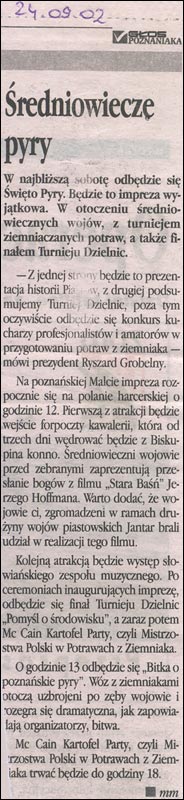 Święto Pyry i rajd konny Biskupin - Poznań - 2002 - scenariusz i konferansjerka